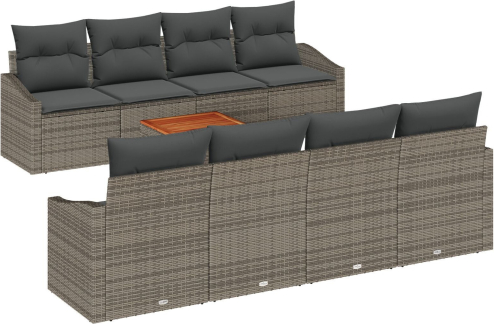vidaXL Zestaw 9-częściowy sof ogrodowych z poduszkami Szary Rattan polietylenowy Akacja