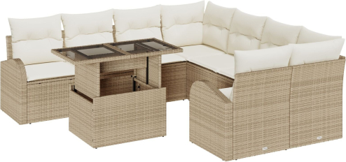 vidaXL Zestaw 9-częściowy sofy ogrodowe z poduszkami Beżowy Polirattan