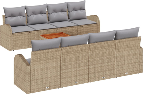 vidaXL Zestaw 9-elementowy kanap ogrodowych z poduszkami Beżowy polirattan Acacia