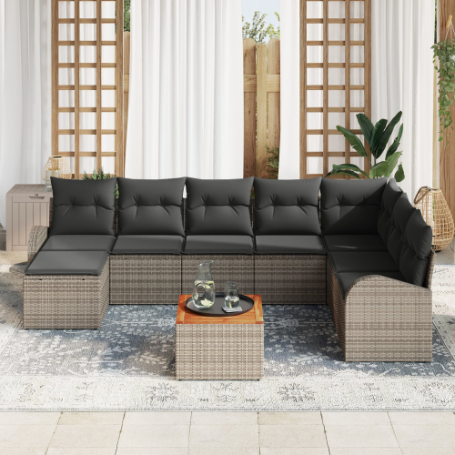 vidaXL Zestaw 9-elementowy sofy ogrodowej z poduszkami szary polirattan