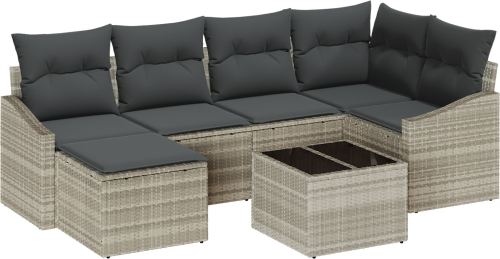 vidaXL Zestaw do jadalni w ogrodzie 7 elementów z poduszkami Szary Polirattan