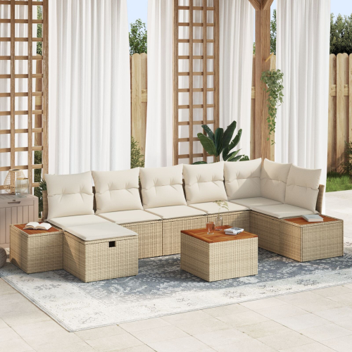vidaXL Zestaw kanap 8 elementów z poduszkami Beżowy Polirattan