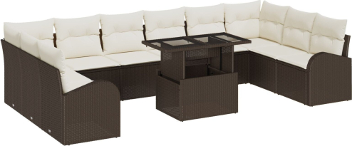vidaXL Zestaw kanap ogrodowych z poduszkami w brązowym rattanie poli, 11 elementów