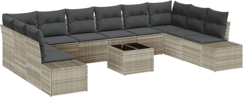 vidaXL Zestaw kanapowy z 11 elementami i szarymi poduszkami z rattanu