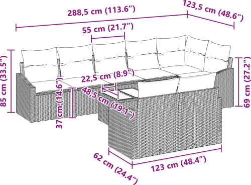vidaXL Zestaw mebli ogrodowych 8 części z poduszkami szary polirattan