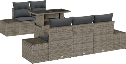 vidaXL Zestaw ogrodowy 6-elementowy Szary Rattan, Poliester