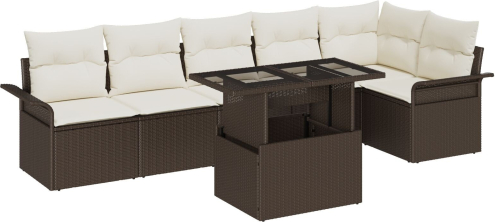 vidaXL Zestaw ogrodowy 7-częściowy z poduszkami Brązowy Polirattan