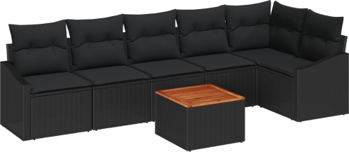 vidaXL Zestaw ogrodowy 7 elementów z poduszkami Czarny Polirattan Akacja