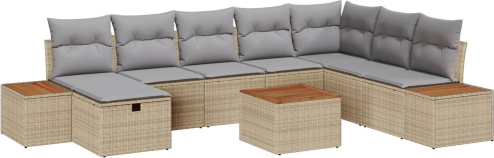 vidaXL Zestaw ogrodowy 9 części z poduszkami Beżowy Polirattan