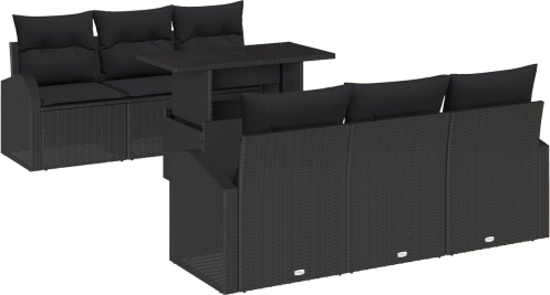 vidaXL Zestaw ogrodowy w 7 częściach z czarnymi poduszkami z polirattanu