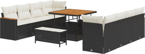 Vidaxl Zestaw sof ogrodowych 11-częściowy z poduszkami Czarny Polirattan Akacja