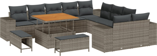vidaXL Zestaw Sof Ogrodowych 13 Części z Poduszkami Szary Polirattan Akacja