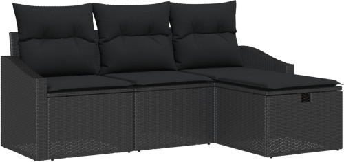 vidaXL Zestaw sof ogrodowych 4 częściowy z poduszkami Czarny PE Rattan