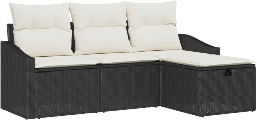 vidaXL Zestaw sof ogrodowych 4-częściowy z poduszkami Czarny Polirattan