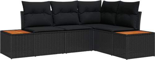 vidaXL Zestaw sof ogrodowych 4-częściowy z poduszkami, czarny polirattan akacjowy