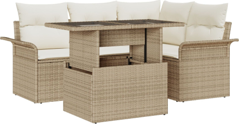 vidaXL Zestaw sof ogrodowych 5 części z poduszkami Beżowy Poliester Rattan