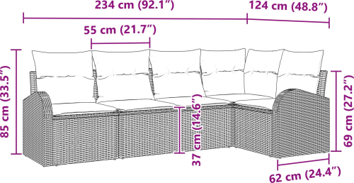 vidaXL Zestaw Sof Ogrodowych 5 Elementów z Poduszkami Jasnoszary Polirattan