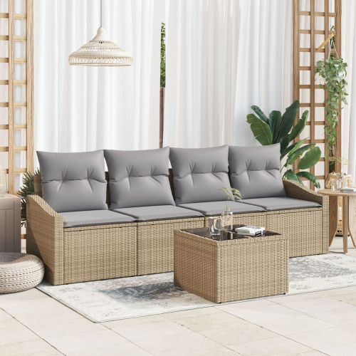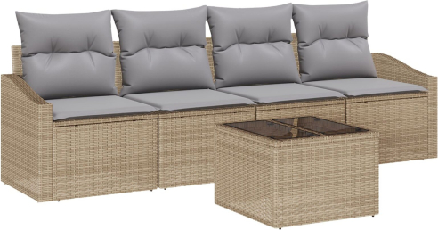 vidaXL Zestaw Sof Ogrodowych 5 sztuk z Poduszkami Beżowy Poli Rattan