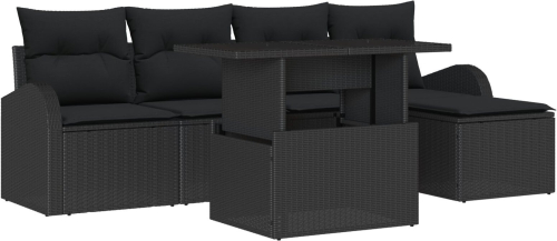 vidaXL Zestaw Sof Ogrodowych 6-cio elementowy z Poduszkami Czarny Polirattan