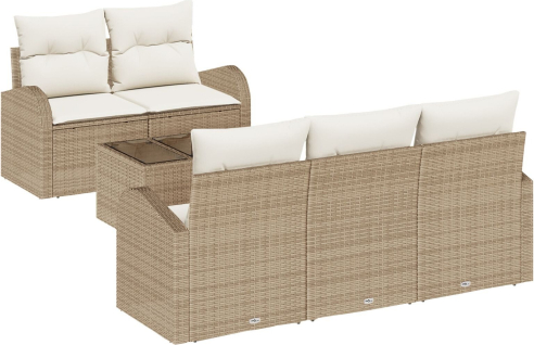 vidaXL Zestaw sof ogrodowych 6 części z poduszkami Beżowy Rattan
