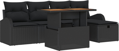 vidaXL Zestaw Sof Ogrodowych 6 Części z Poduszkami Czarny Polirattan