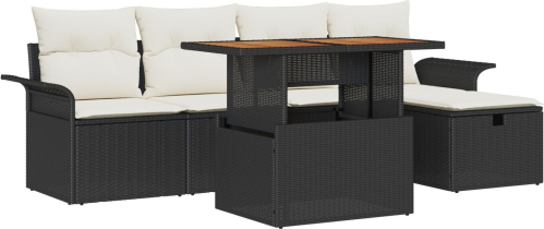 vidaXL Zestaw sof ogrodowych 6 części z poduszkami Czarny Polirattan