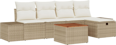 vidaXL Zestaw sof ogrodowych 6-częściowy Beżowy Rattan, Poliester, Stal