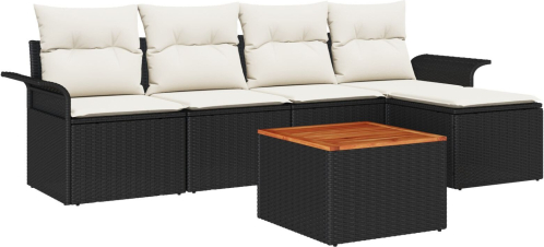 vidaXL Zestaw sof ogrodowych 6-częściowy Czarny i kremowy Polirattan