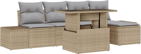 vidaXL Zestaw sof ogrodowych 6-częściowy z poduszkami Beżowy Polirattan