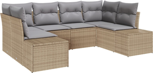 vidaXL Zestaw sof ogrodowych 6-częściowy z poduszkami Beżowy Polirattan