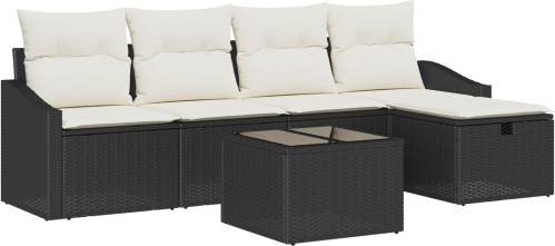 vidaXL Zestaw sof ogrodowych 6 częściowy z poduszkami Czarny Polirattan