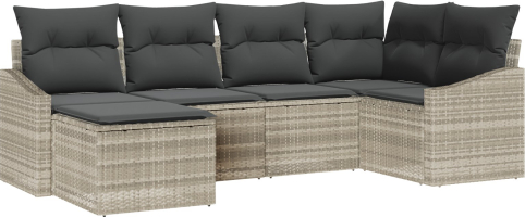 vidaXL Zestaw sof ogrodowych 6-częściowy z poduszkami jasnoszary polirattan