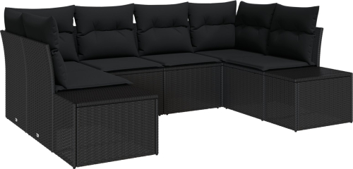 vidaXL Zestaw Sof Ogrodowych 6 Elementów z Poduszkami Czarny Polirattan