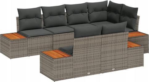 vidaXL Zestaw sof ogrodowych 7 części z poduszkami Szary Polirattan Akacja