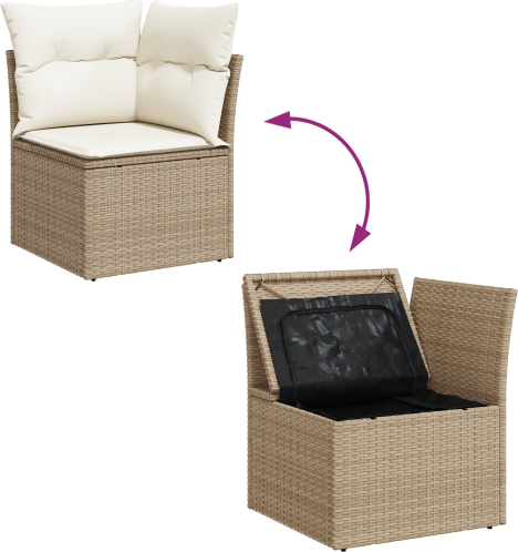 vidaXL Zestaw Sof Ogrodowych 7 Częściowy z Poduszkami Beżowy Poli Rattan Akacja