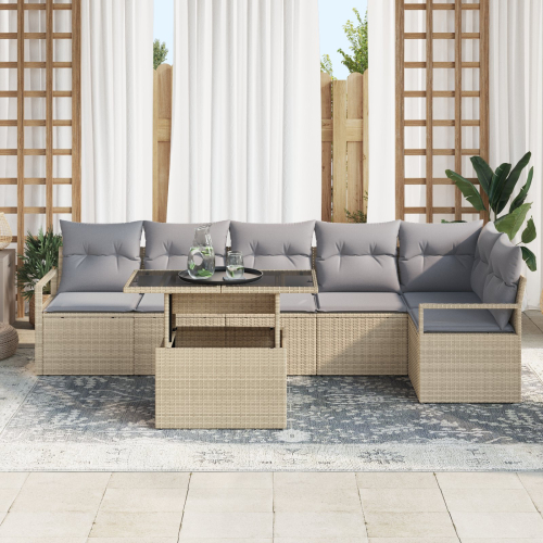 Vidaxl Zestaw sof ogrodowych 7-częściowy z poduszkami beżowy Polirattan