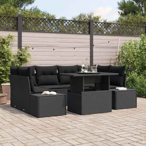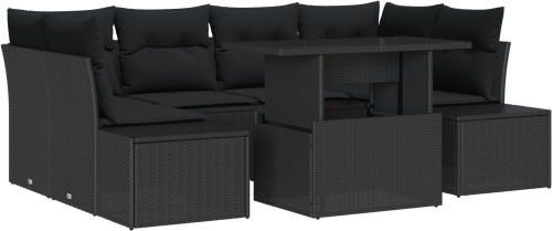 vidaXL Zestaw Sof Ogrodowych 7 częściowy z Poduszkami Czarny Polirattan