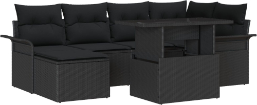 vidaXL Zestaw Sof Ogrodowych 7-częściowy z Poduszkami Czarny Polirattan