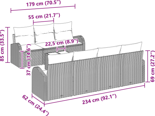 vidaXL Zestaw Sof Ogrodowych 8 Części z Poduszkami Szary Polirattan