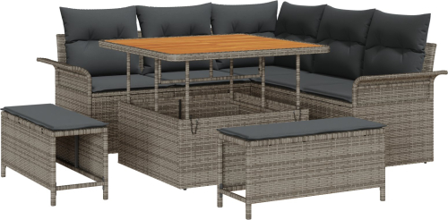 vidaXL Zestaw sof ogrodowych 8-częściowy z poduszkami Szary Poli Rattan Akacja