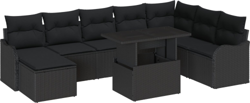vidaXL Zestaw Sof Ogrodowych 9 Części z Poduszkami Czarny Polirattan