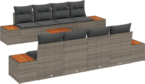 vidaXL Zestaw Sof Ogrodowych 9 Części z Poduszkami Szary Polirattan Akacja
