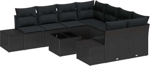 vidaXL Zestaw sof ogrodowych 9-częściowy z poduszkami Czarny Polirattan