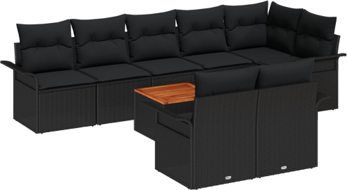 vidaXL Zestaw sof ogrodowych 9 elementów z poduszkami czarny polirattan akacja