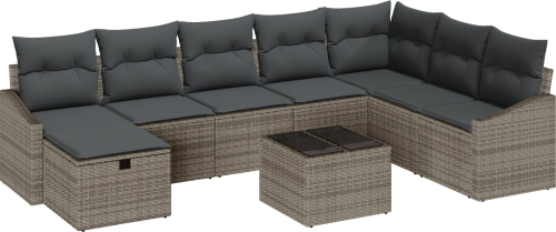 vidaXL Zestaw sof ogrodowych 9 Elementów z poduszkami Szary Rattan