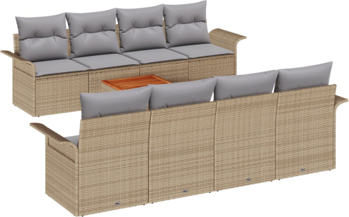 vidaXL Zestaw sof ogrodowych 9-elementowy z poduszkami Beżowy Rattan Akacja