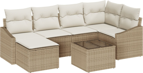 vidaXL Zestaw sof ogrodowych w 7 częściach z poduszkami z brązowego polirattanu