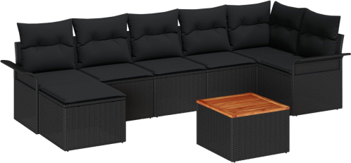 vidaXL Zestaw sof ogrodowych w 8 częściach z poduszkami Czarny Polirattan Akacja