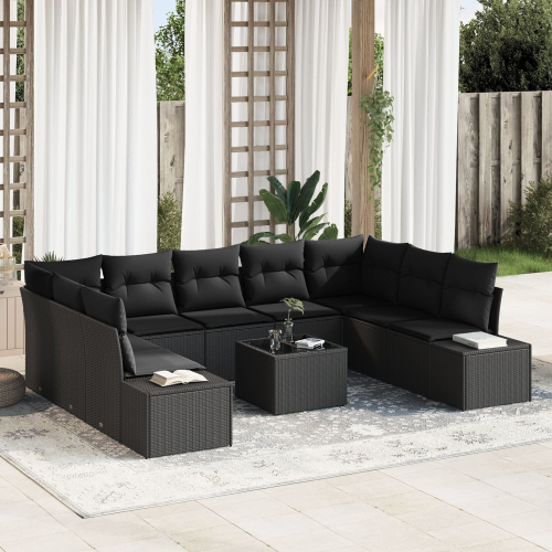 vidaXL Zestaw sof ogrodowych Zestaw 10 Czarny Rattan, Poliester, Stal