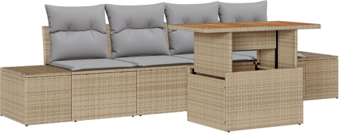 vidaXL Zestaw sof ogrodowych Zestaw 5-częściowy Beżowy Rattan